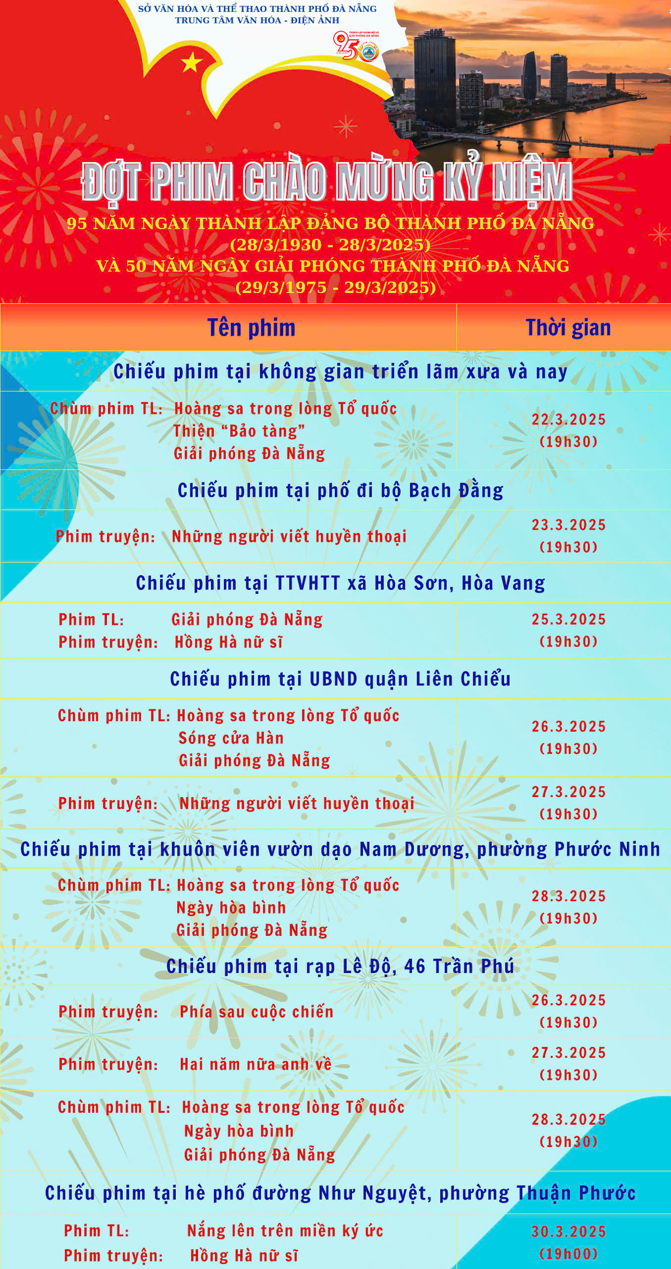 Đợt Phim Chào Mừng 95 năm Ngày thành lập Đảng bộ thành phố Đà Nẵng (28/3/1930 – 28/3/2025) và 50 năm Ngày Giải phóng thành phố Đà Nẵng (29/3/1975 – 29/3/2025)