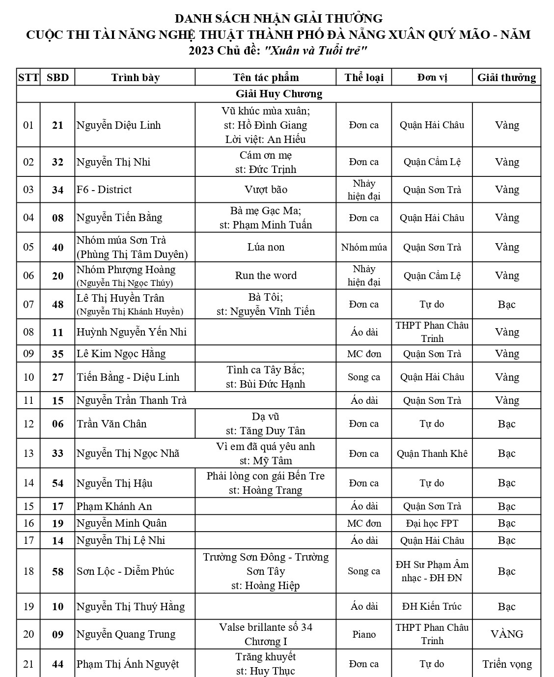 | 2 | Giải Nhì | Trung tâm VHTT Quận Hải Châu | ||||