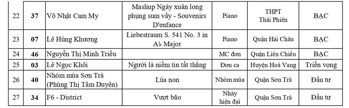 | 31 | Giải Khuyến Khích | Trung tâm Văn hóa, TTTT Quận Liên Chiểu | ||||