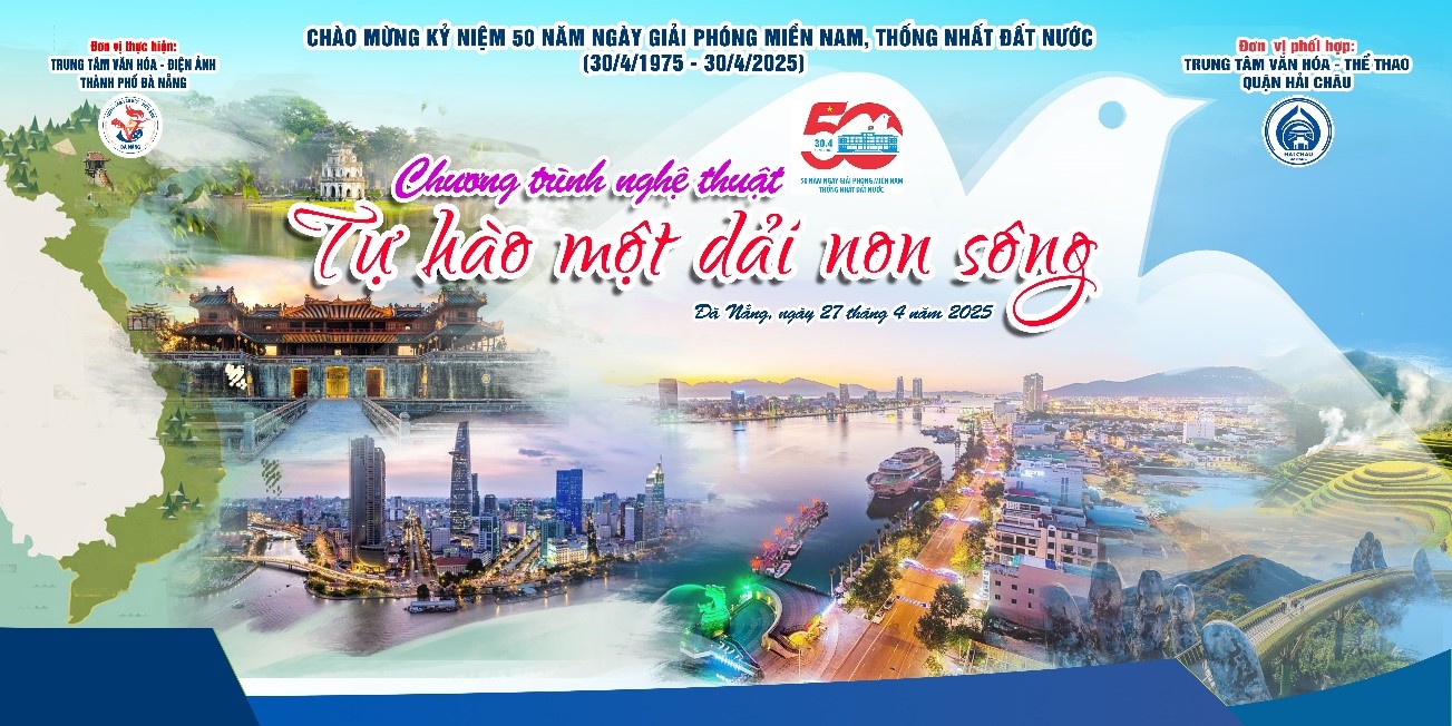 Trung tâm Văn hóa – Điện ảnh thành phố Đà Nẵng phối hợp với Trung tâm Văn hóa – Thể thao quận Hải Châu tổ chức Chương trình nghệ thuật đặc biệt với chủ đề “Tự hào một dải non sông” nhân dịp kỷ niệm 50 năm Ngày Giải phóng miền Nam, thống nhất đất nước (30/4/1975 – 30/4/2025).