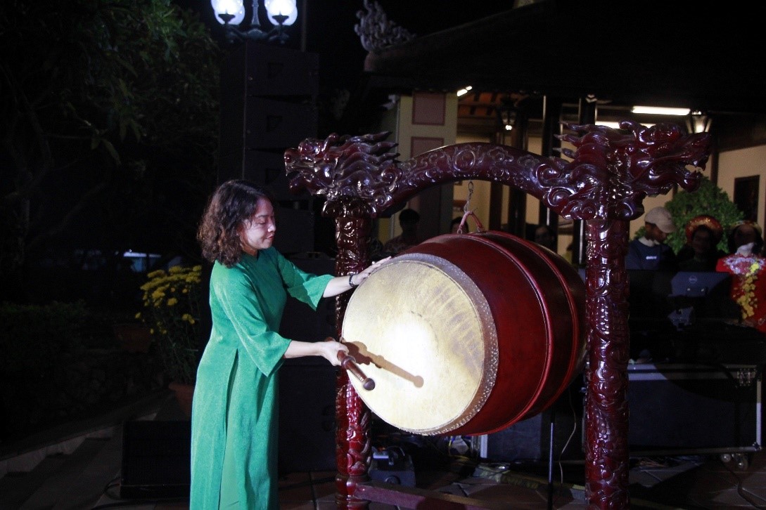 NSƯT, Bà Nguyễn Thị Hội An – Phó Giám đốc Sở VH&TT TP Đà Nẵng đánh trống khai HộiVới sự tham gia phối hợp của Trung tâm VHTT&TT quận Sơn Trà; Thư viện Khoa học Tổng hợp Đà Nẵng; Câu lạc bộ Thư pháp Hội Hán Nôm thành phố Đà Nẵng; Hội Duyên dáng Áo dài thành phố Đà Nẵng. Chương trình được mở màn của Hội Duyên dáng Áo dài thành phố Đà Nẵng với 01 tiết mục trình diễn áo dài truyền thống của 40 người mẫu biểu diễn, tôn lên nét đẹp văn hóa con người của Việt Nam ta xưa nay. Đặc biệt, với sự góp mặt của các nhà thơ và nhạc sĩ có những đóng góp lớn cho VHNT TP như: Nhà thơ Lê Anh Dũng, Nhà thơ Nguyễn Nho Khiêm, Nhà thơ Bùi Xuân, Nhạc sĩ Ái Nghĩa, Nhạc sĩ Nguyễn Văn Nho, Nhạc sĩ Duy Khoái; cùng 06 Câu lạc bộ Thơ trực thuộc Trung tâm VH-ĐA và trên địa bàn thành phố: Chi hội Thơ Đường luật, Thơ Hàn Giang, Thơ Việt Nam, Chi hội VHNT Thơ Nguồn Việt, Chi hội VHNT Thơ Trường Sơn, Thơ Thái Phiên. Chương trình đêm Thơ nhạc Tết nguyên tiêu bao gồm 18 tiết mục, trong đó có 17 bài thơ được lựa chọn biểu diễn từ hơn 35 nghệ sĩ, nhạc công và diễn viên.