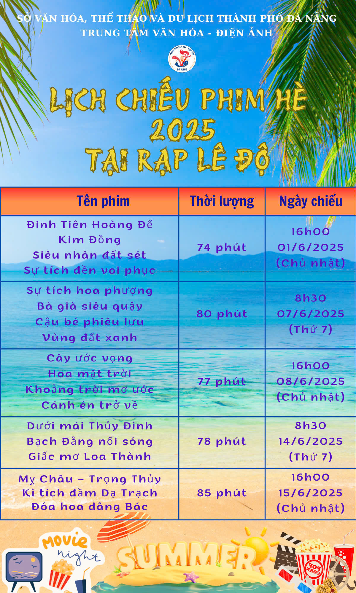 Trung tâm Văn hóa – Điện ảnh trân trọng thông báo: Đợt phim “Tháng hành động vì trẻ em và hoạt động hè 2025” sẽ diễn ra vào thứ Bảy, Chủ nhật hàng tuần từ ngày 1/6 – 15/6/2025.