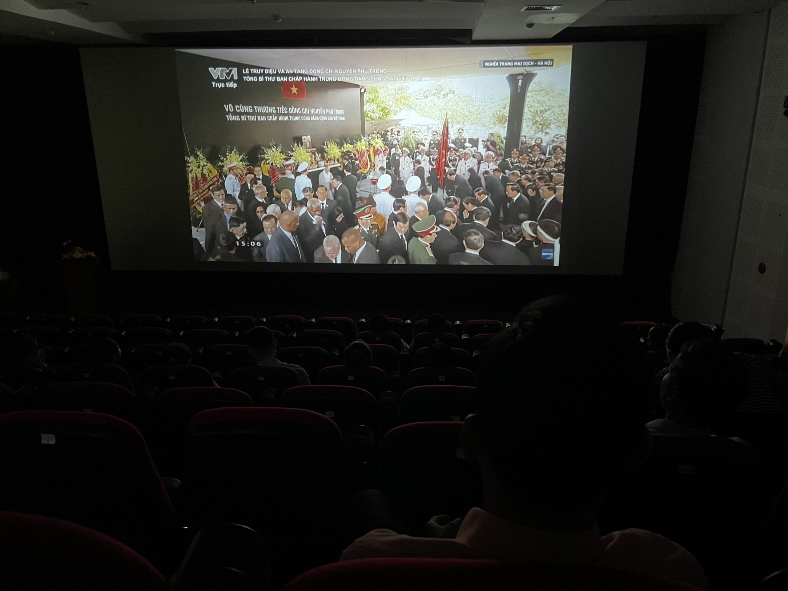 Sau phút mặc niệm, các đảng viên được xem các đoạn phim hình ảnh về cuộc đời và sự nghiệp của Tổng Bí thư Nguyễn Phú Trọng. Những thước phim sống động đã tái hiện lại những cột mốc quan trọng trong cuộc đời chính trị của ông, từ những ngày đầu khởi nghiệp cho đến khi trở thành Tổng Bí thư. Hình ảnh ông luôn tận tâm, trách nhiệm trong công việc, cùng với những bài phát biểu sâu sắc về lòng yêu nước và tinh thần cách mạng đã để lại ấn tượng mạnh mẽ trong lòng mỗi người.