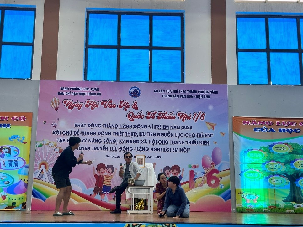 Triển khai Tháng hành động vì trẻ em năm 2024. Trung tâm Văn hóa – Điện ảnh TP phối hợp cùng với Trung tâm Văn hóa và Thể thao phường Hòa Xuân, tổ chức phát động chương trình với chủ đề “Hành động thiết thực, ưu tiên nguồn lực trẻ em”. Tập huấn kỹ năng sống, kỹ năng xã hội cho thanh thiếu niên, tuyên truyền lưu động với chủ đề “Lắng nghe lời em nói” nhân ngày quốc tế thiếu nhi, ngày hội vào hè của các em học sinh.