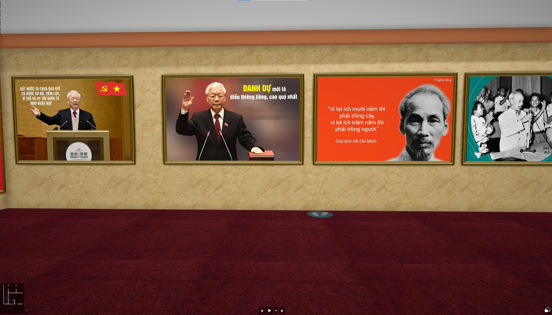 Những hình ảnh tư liệu quý báu và các câu nói nổi tiếng của các vị lãnh tụ. Trong đó, hình ảnh của Chủ tịch Hồ Chí Minh – người đã dẫn dắt dân tộc Việt Nam đến độc lập tự do, và Tổng Bí thư Nguyễn Phú Trọng – người kiên định với con đường xây dựng đất nước theo định hướng xã hội chủ nghĩa, được tái hiện một cách đầy xúc động. Các bức tranh 3D còn kèm theo các trích dẫn nổi tiếng như: “Không có gì quý hơn độc lập, tự do” của Chủ tịch Hồ Chí Minh hay “Danh dự mới là điều thiêng liêng cao quý nhất” của Tổng Bí thư Nguyễn Phú Trọng, nhằm khơi dậy tinh thần yêu nước và lòng tự hào dân tộc trong mỗi người xem.